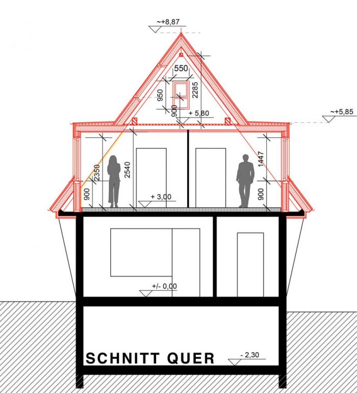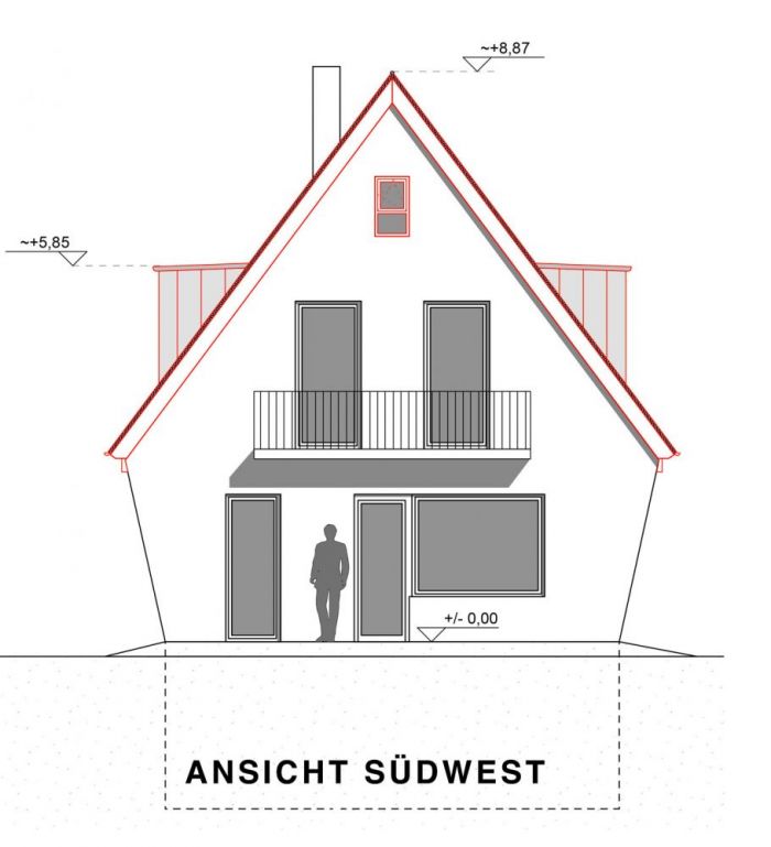 Das „Einbreiten statt Ausbreiten“ bzw. der Raumgewinn durch Aufsparrendämmung, Gauben und Spitzboden steht zudem in einem erheblich besseren Kosten-Nutzen-Verhältnis, als z.B. eine erdgeschossige Erweiterung. Das äußere Erscheinungsbild des charmanten Nachkriegshauses mit zeittypisch schrägen Wandvorlagen ist durch die Dachsanierung nicht beeinträchtigt und das frisch gestrichene Haus erstrahlt in neuem Glanze.